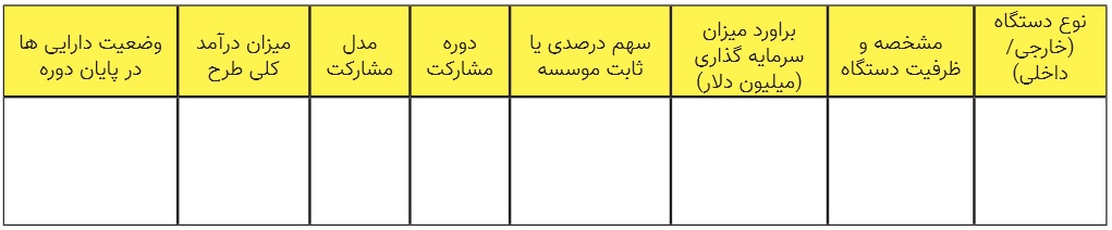 - آورده سرمایهگذار: تأمین مالی، خرید و نصب تجهیزات، بهرهبرداری و نگهداری